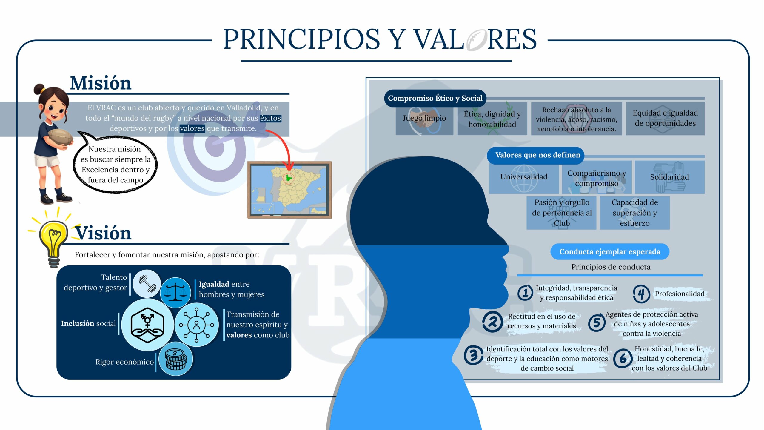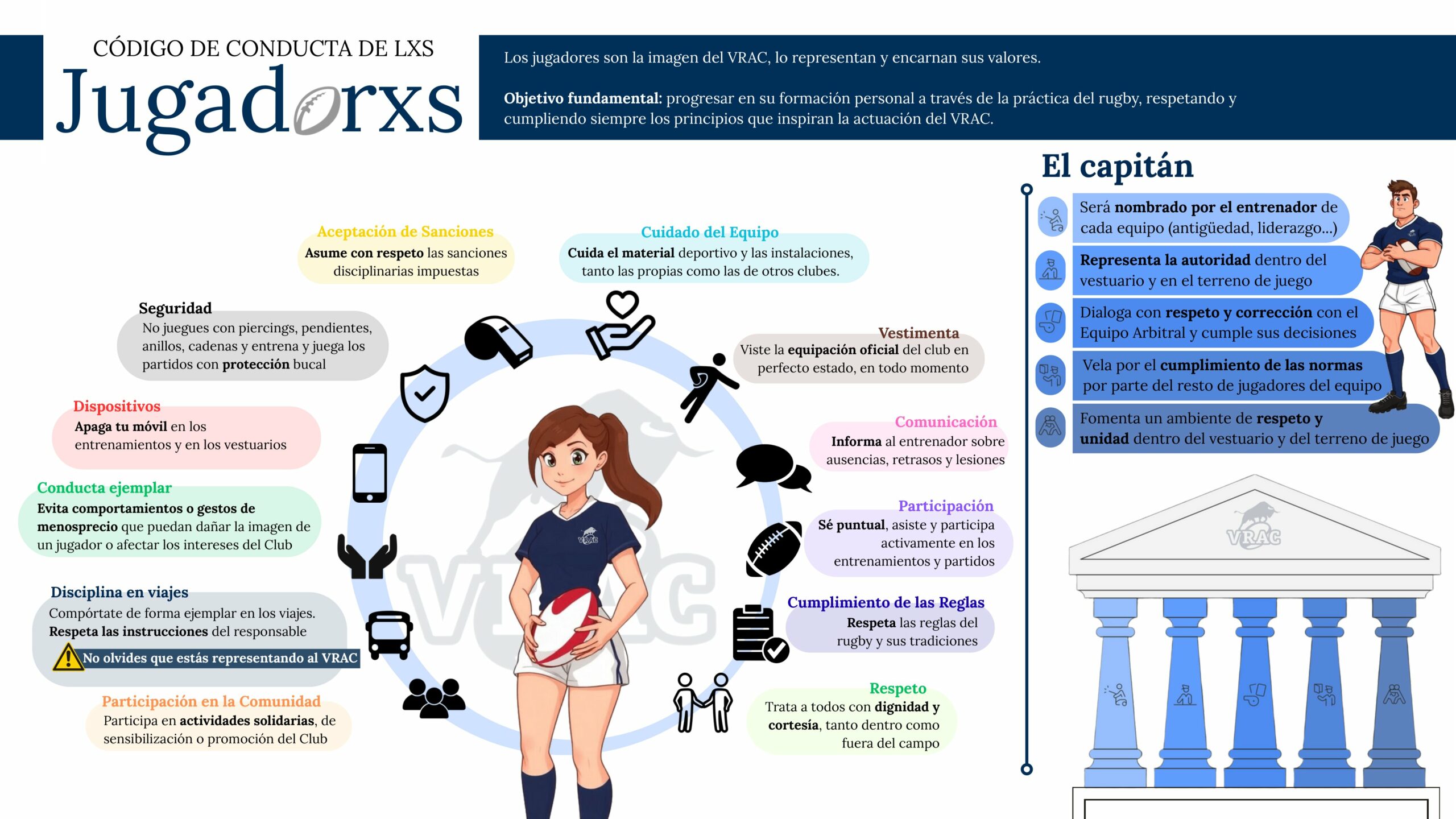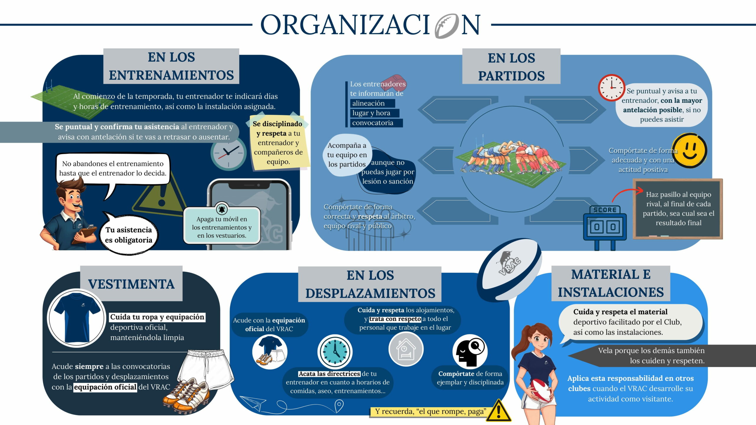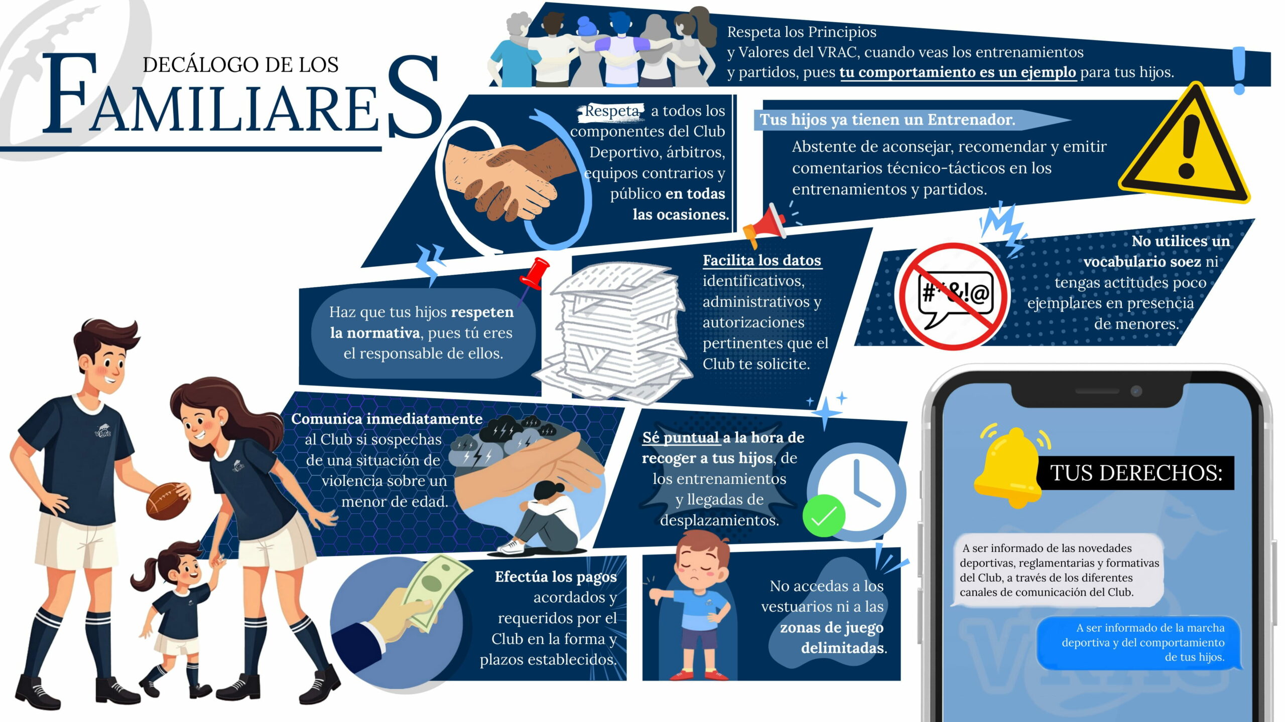 Respeta los Principios y Valores del VRAC, cuando veas los entrenamientos y partidos, pues tu comportamiento es un ejemplo para tus hijos.